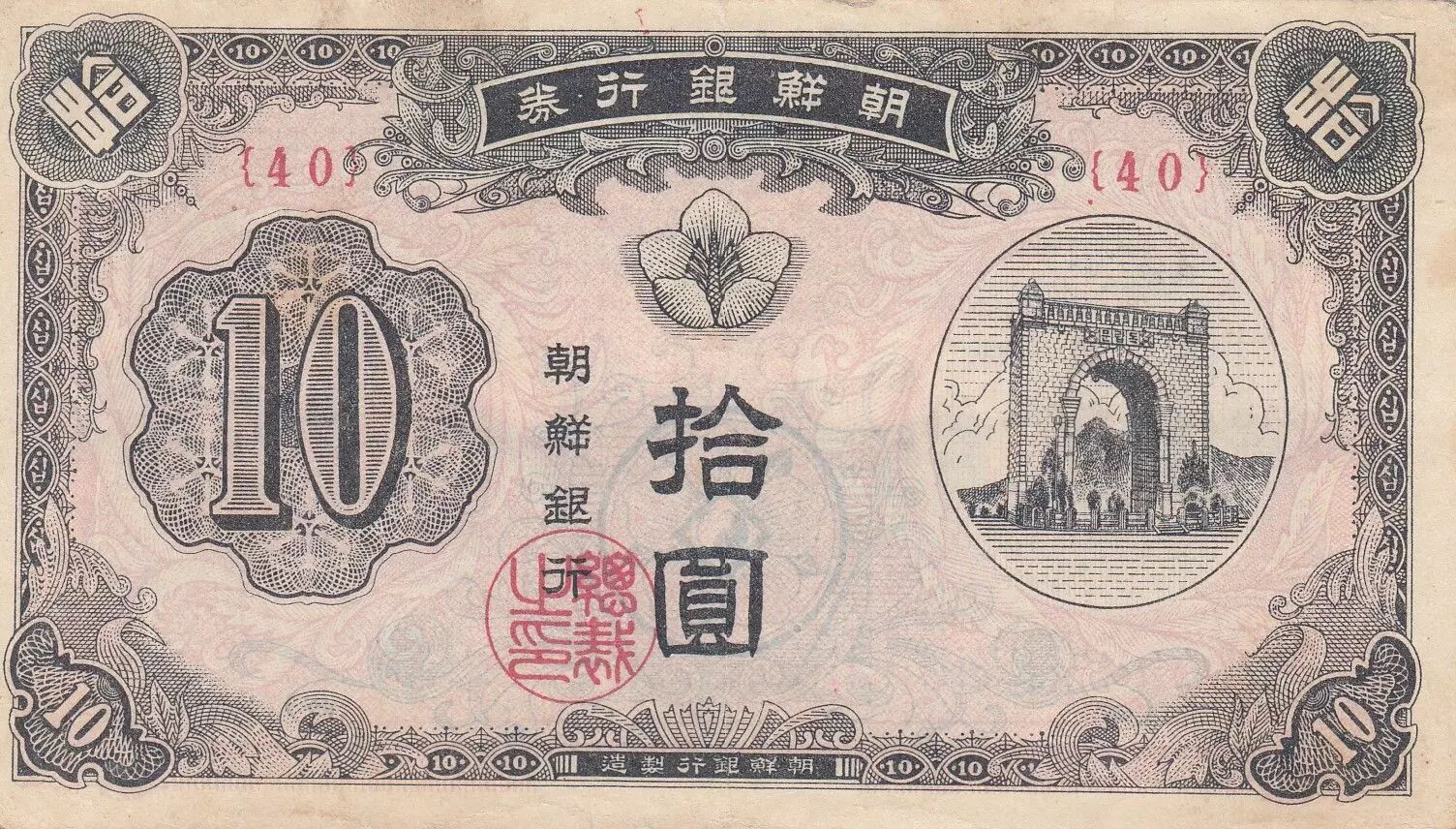 Billet Corée du Sud 10 Won Porte de la Cité - 1949 - Bloc 40