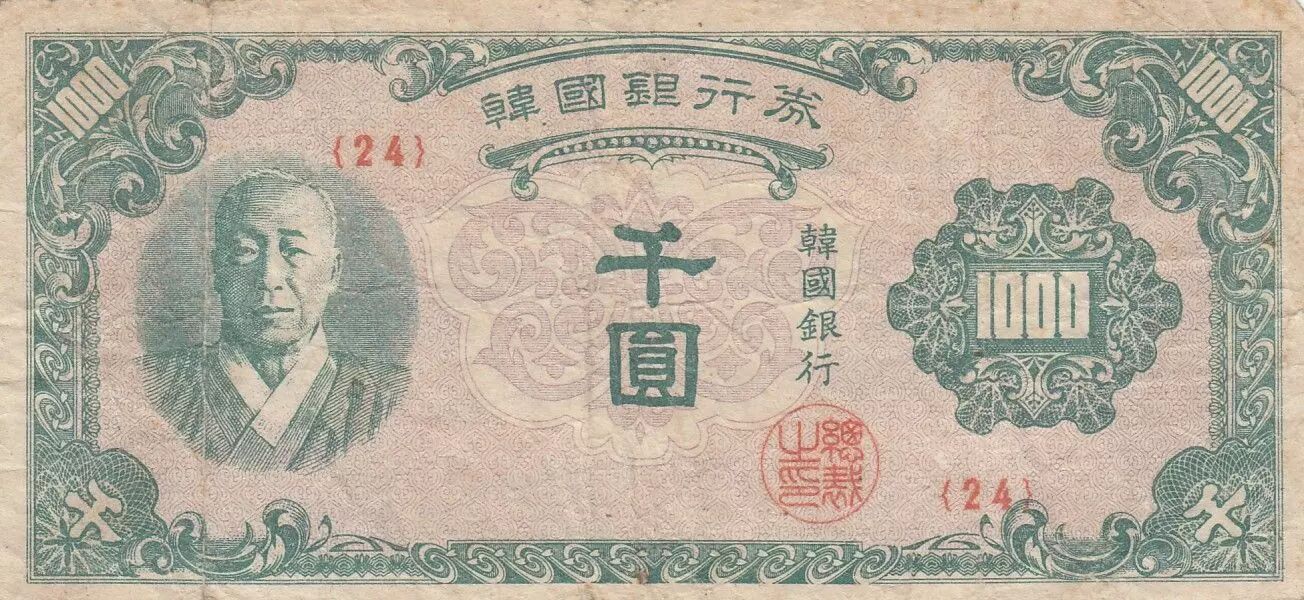 Accueil > Archivage > archivage-Billets du Monde > Corée du Sud 1000 Won - President Syngman Rhee - Série 24 - ND (1950)