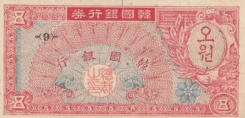 Billet Corée du Sud 5 Won - Canton 9 - 1953