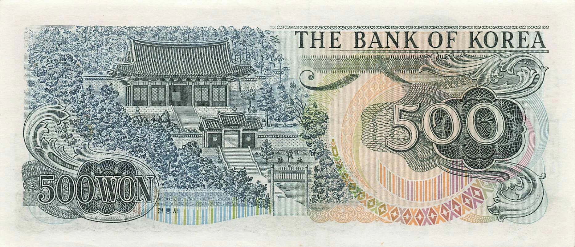 Accueil > Billets du Monde > Billets d'Asie > Corée du Sud > Corée du Sud 500 Won - ND (1973-82) - P.43