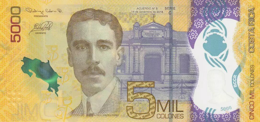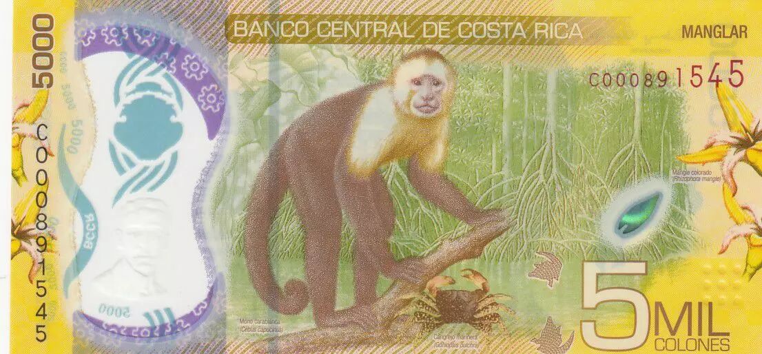 Banknote Costa Rica 5000 Colones A. Gonzalez Flores - Monkey, flower - 2018(2020) - UNC - Polymer