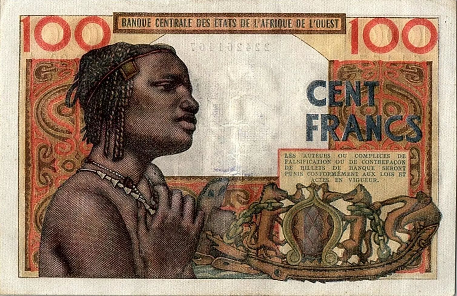 Accueil > Archivage > archivage-Billets du Monde > Côte d'Ivoire 100 Francs, masque 20-03-1961 - Côte d'ivoire - Série S.90 A - SUP -P.101 Aa