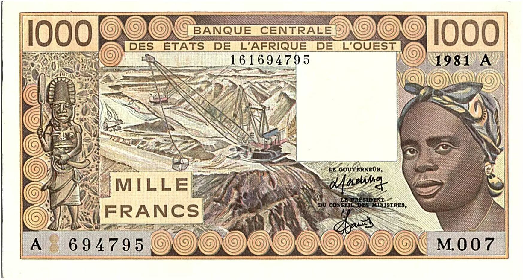Billet Côte d'Ivoire 1000 Francs femme 1981 - Côte d'ivoire - Série M.007 - P.107Ab - SUP +