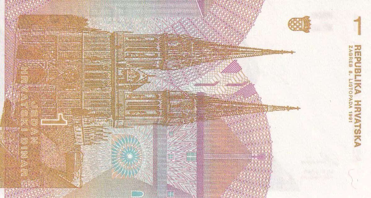 Banknote Croatia 1 Dinara - R. Boskovic - Cathedral of Zagreb - 1991 - P.16