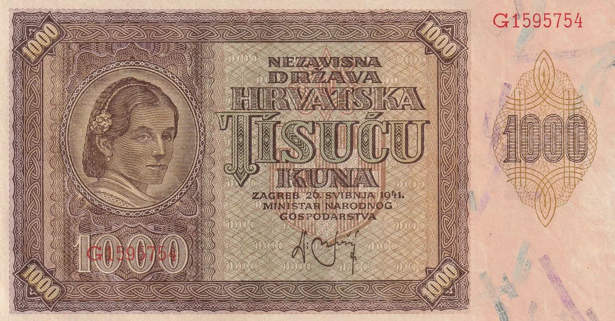 Banknote Croatia 1000 Kuna - Young girl - Mountains - 1941 - Serial G