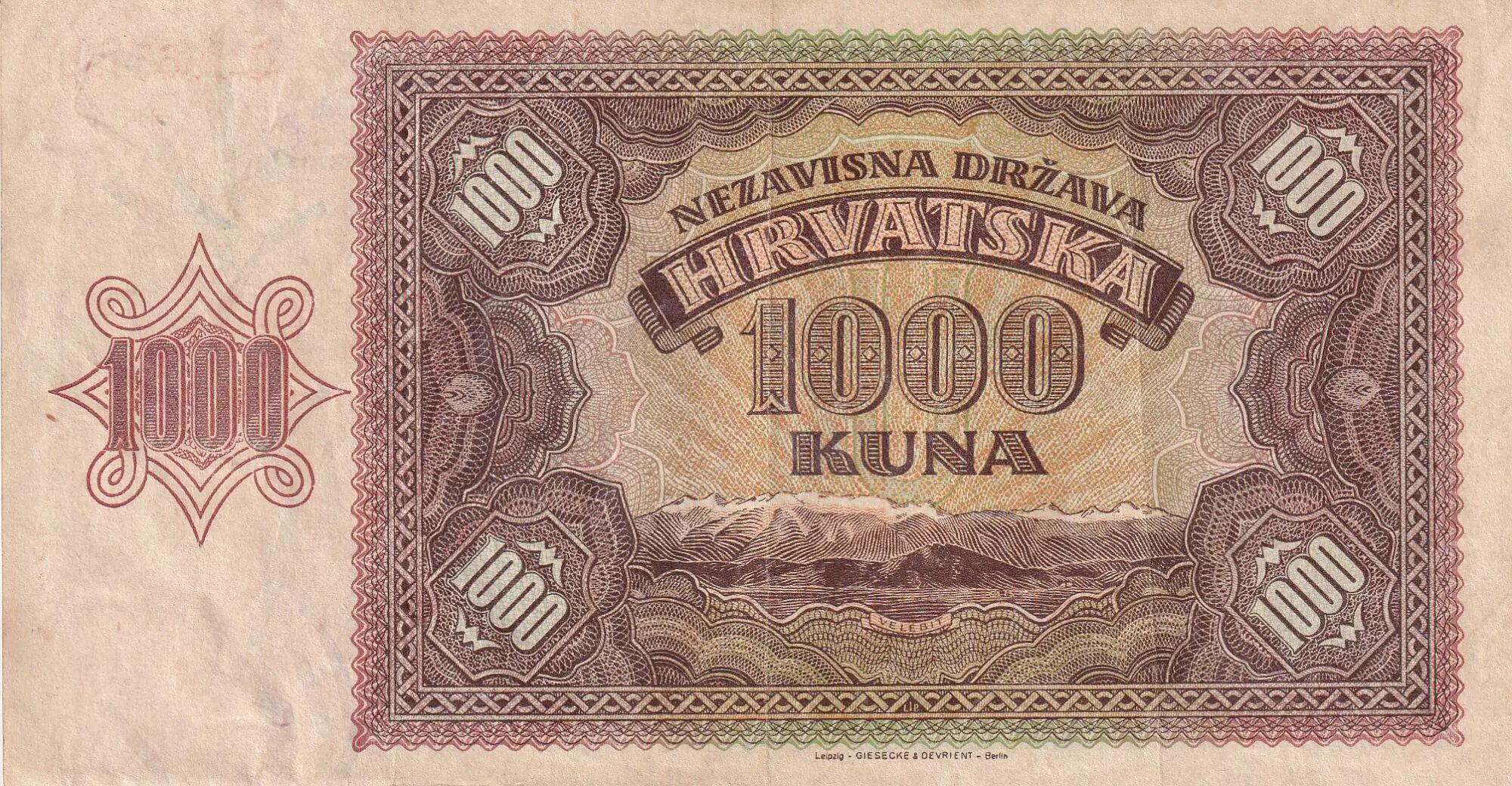 Home > > Croatia 1000 Kuna - young girl - mountains - 1941 - Serial Q - VF - P.4
