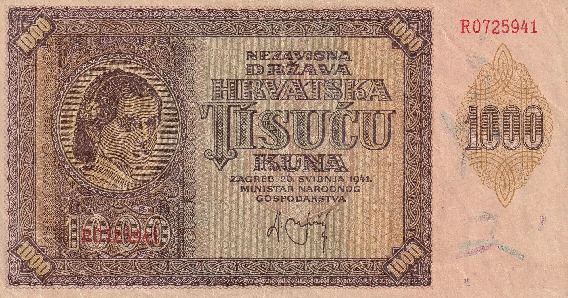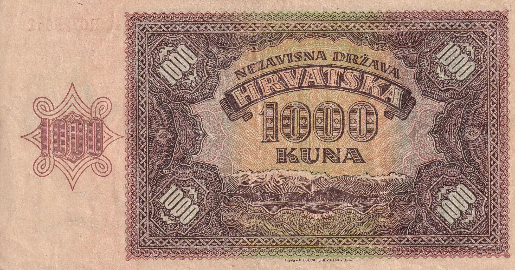 Banknote Croatia 1000 Kuna - young girl - mountains - 1941 - Serial R - VF - P.4