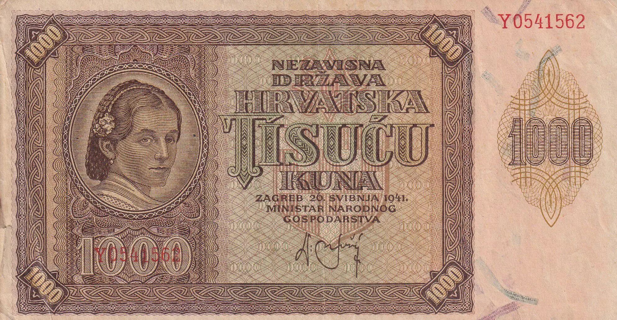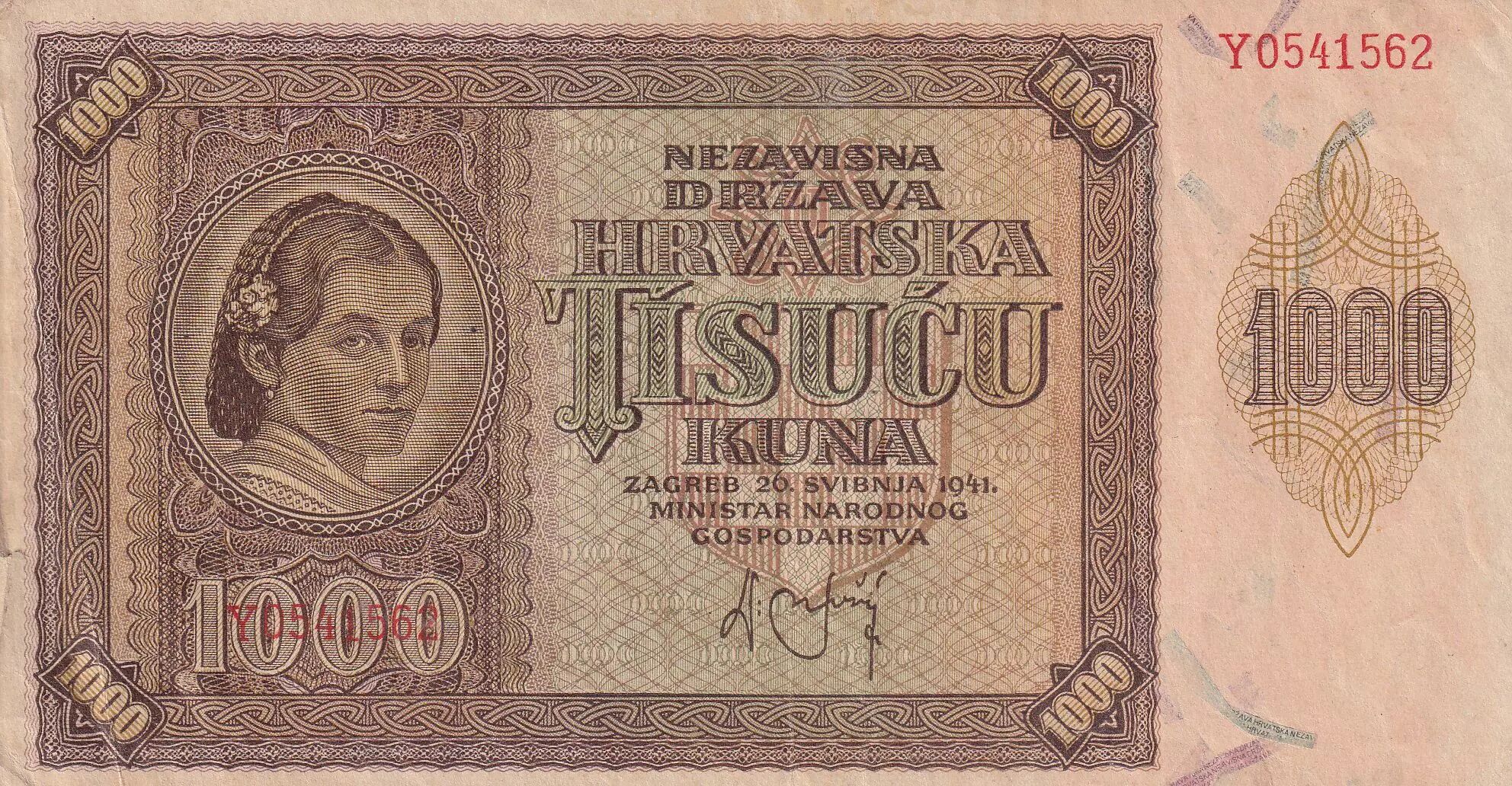 Banknote Croatia 1000 Kuna - young girl - mountains - 1941 - Serial Y - VF - P.4