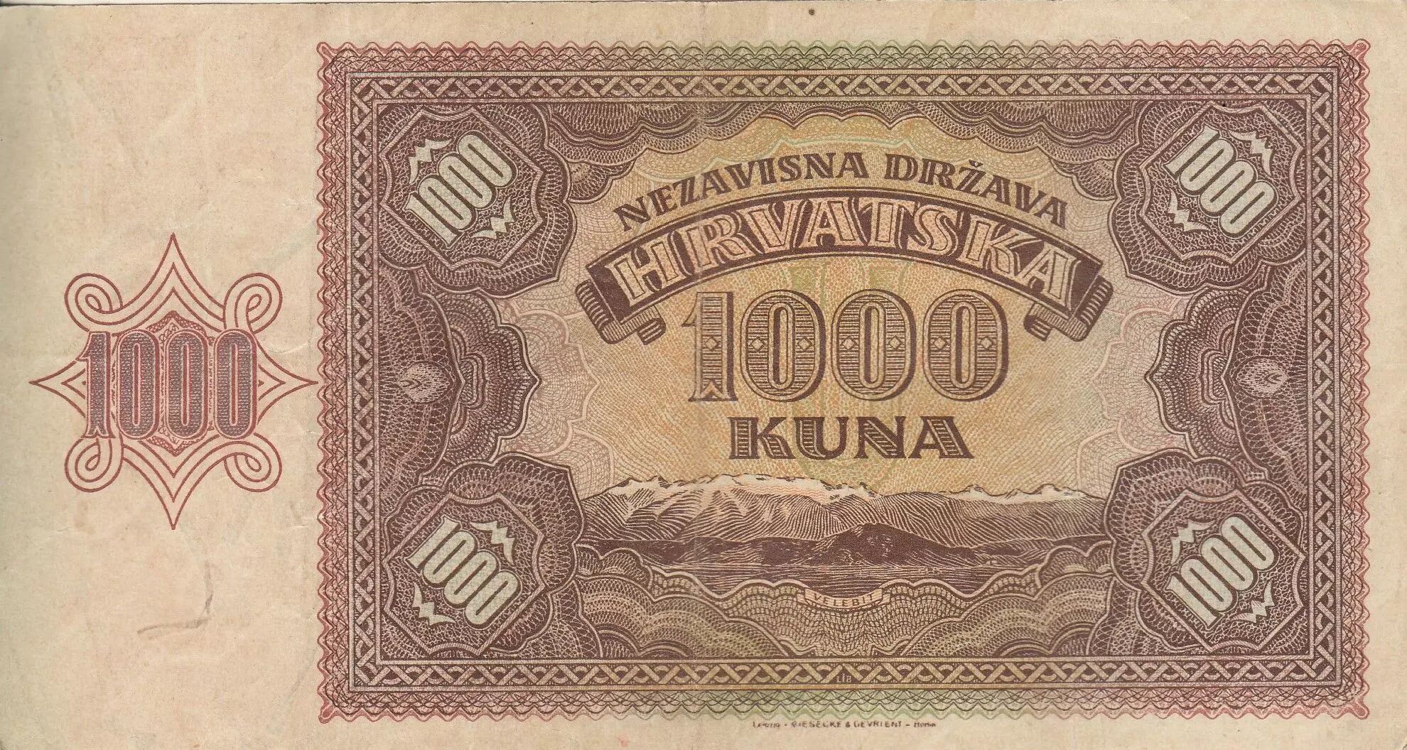 Banknote Croatia 1000 Kuna - Young girl - Mountains - 26-05-1941 - Serial D