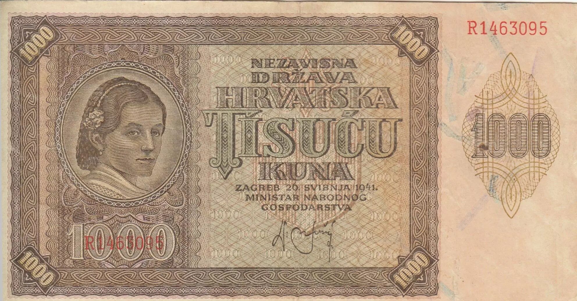 Banknote Croatia 1000 Kuna - Young girl - Mountains - 26-05-1941 - Serial R
