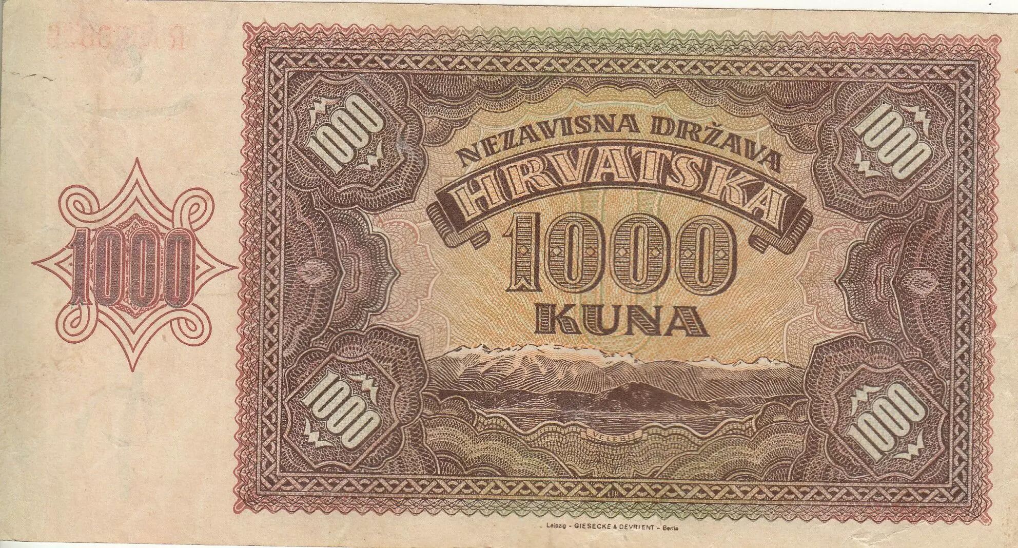 Banknote Croatia 1000 Kuna - Young girl - Mountains - 26-05-1941 - Serial R