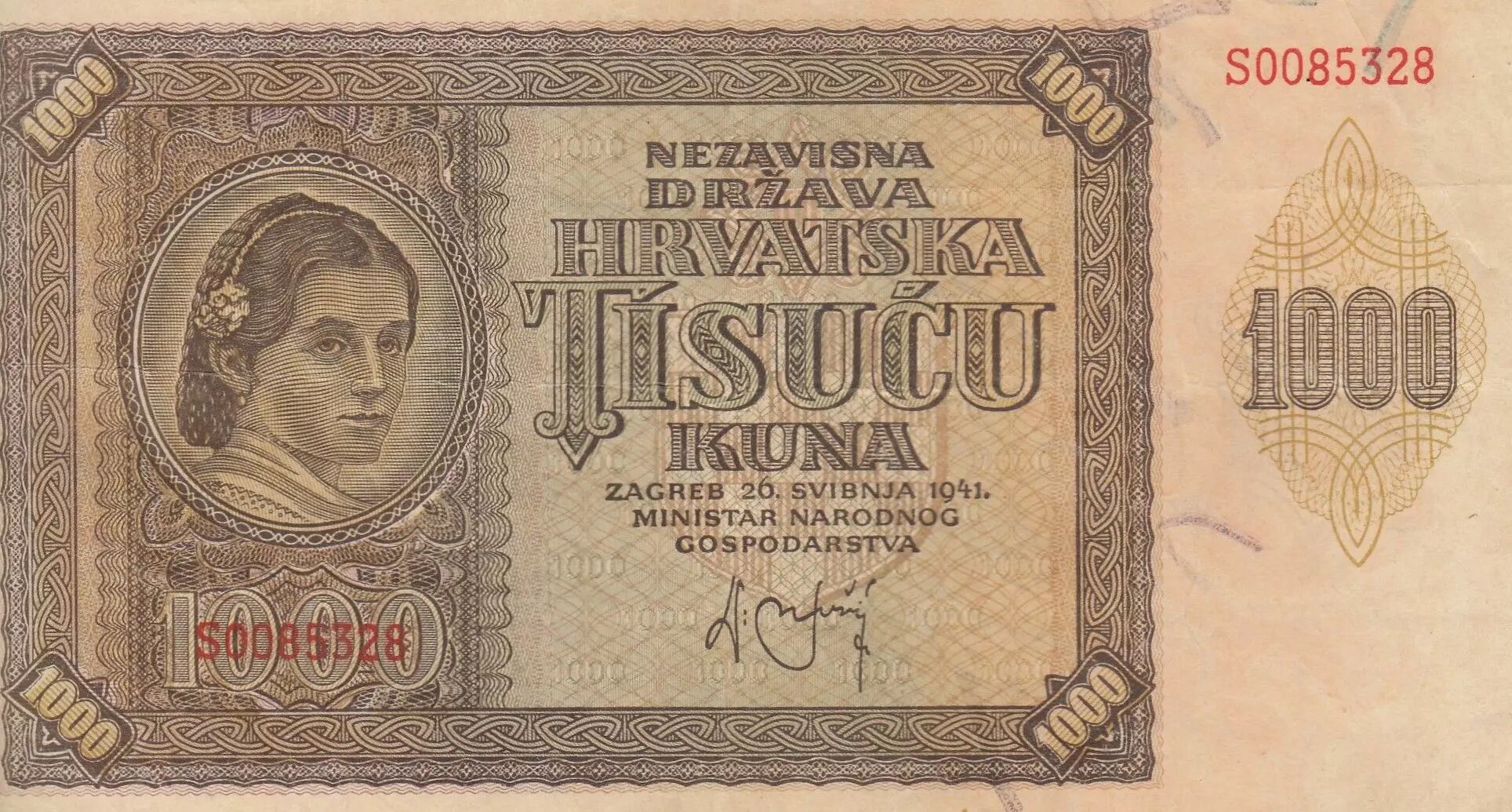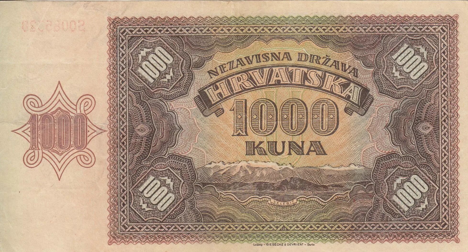 Banknote Croatia 1000 Kuna - Young girl - Mountains - 26-05-1941 - Serial S