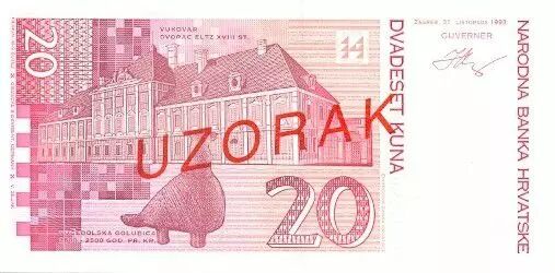 Banknote Croatia 20 Kuna 1994 J. Jelacic - Castle of Count Eltz in Vukovar