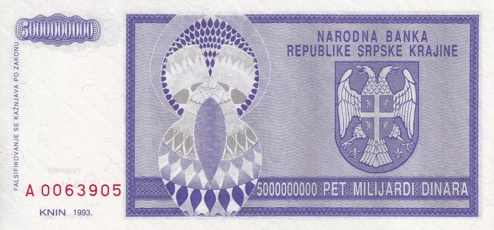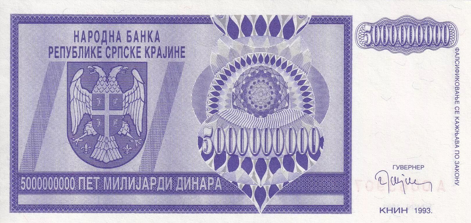 Banknote Croatia 5000000000 Dinara - Arms - 1993 - P.R18