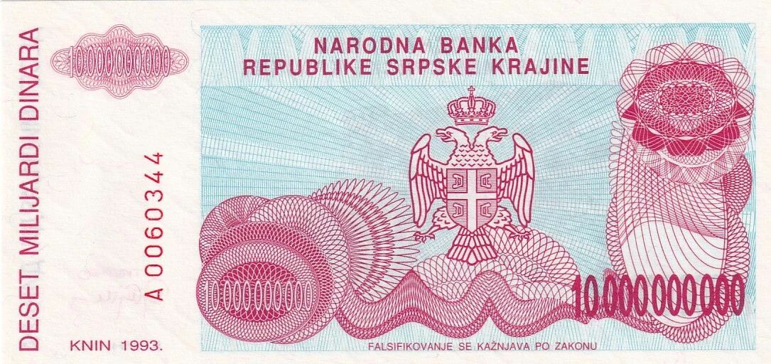 Ce billet de banque a été émis par la Croatie en 1993. Il possède une valeur nominale de 10 000 000 dinara.