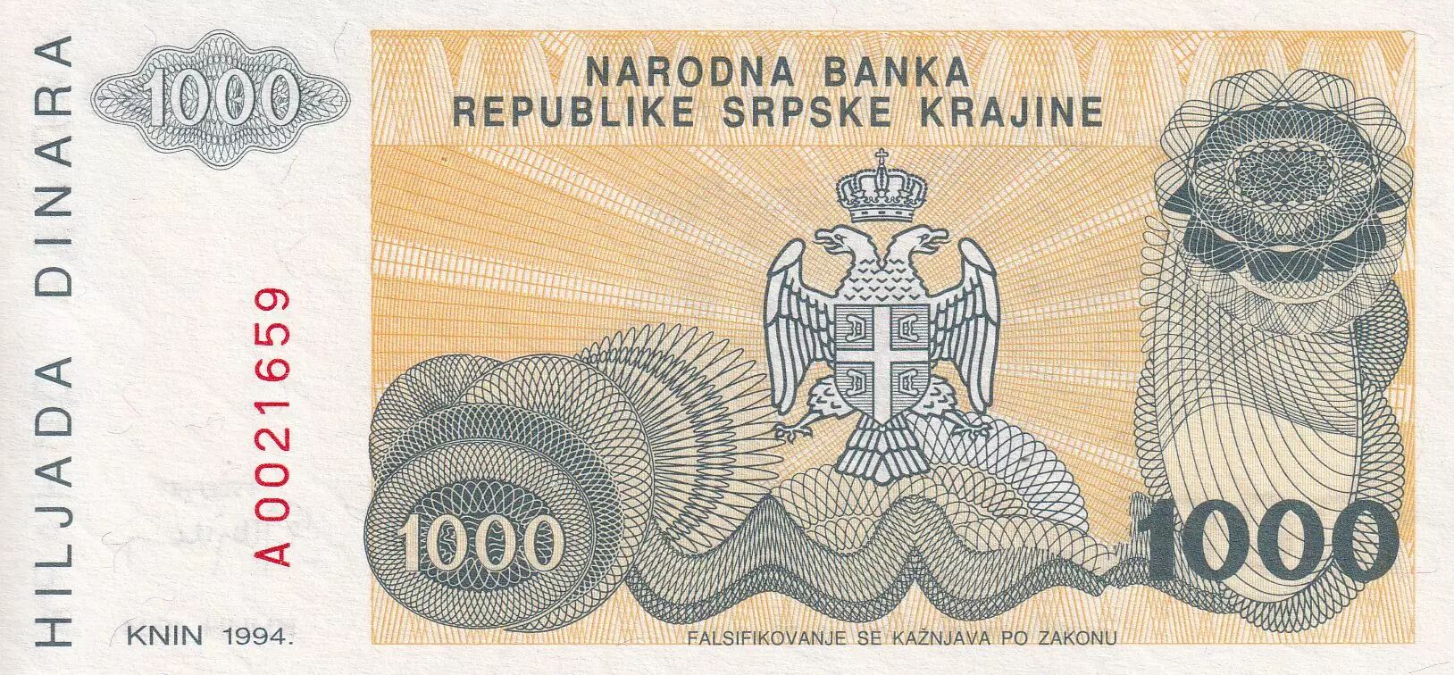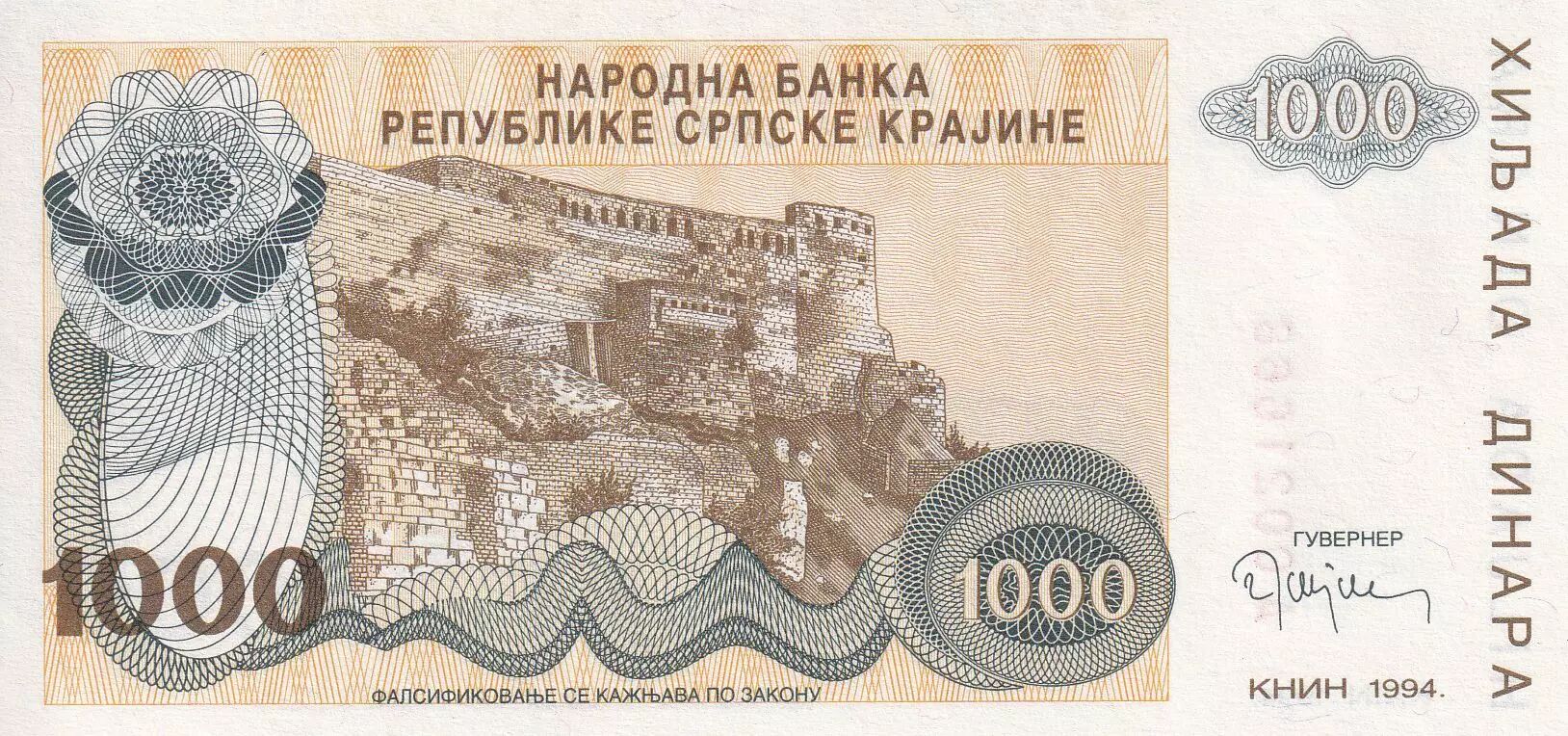Accueil > Archivage > Croatie 1000 Dinara - Armoiries - 1994 - P.R30