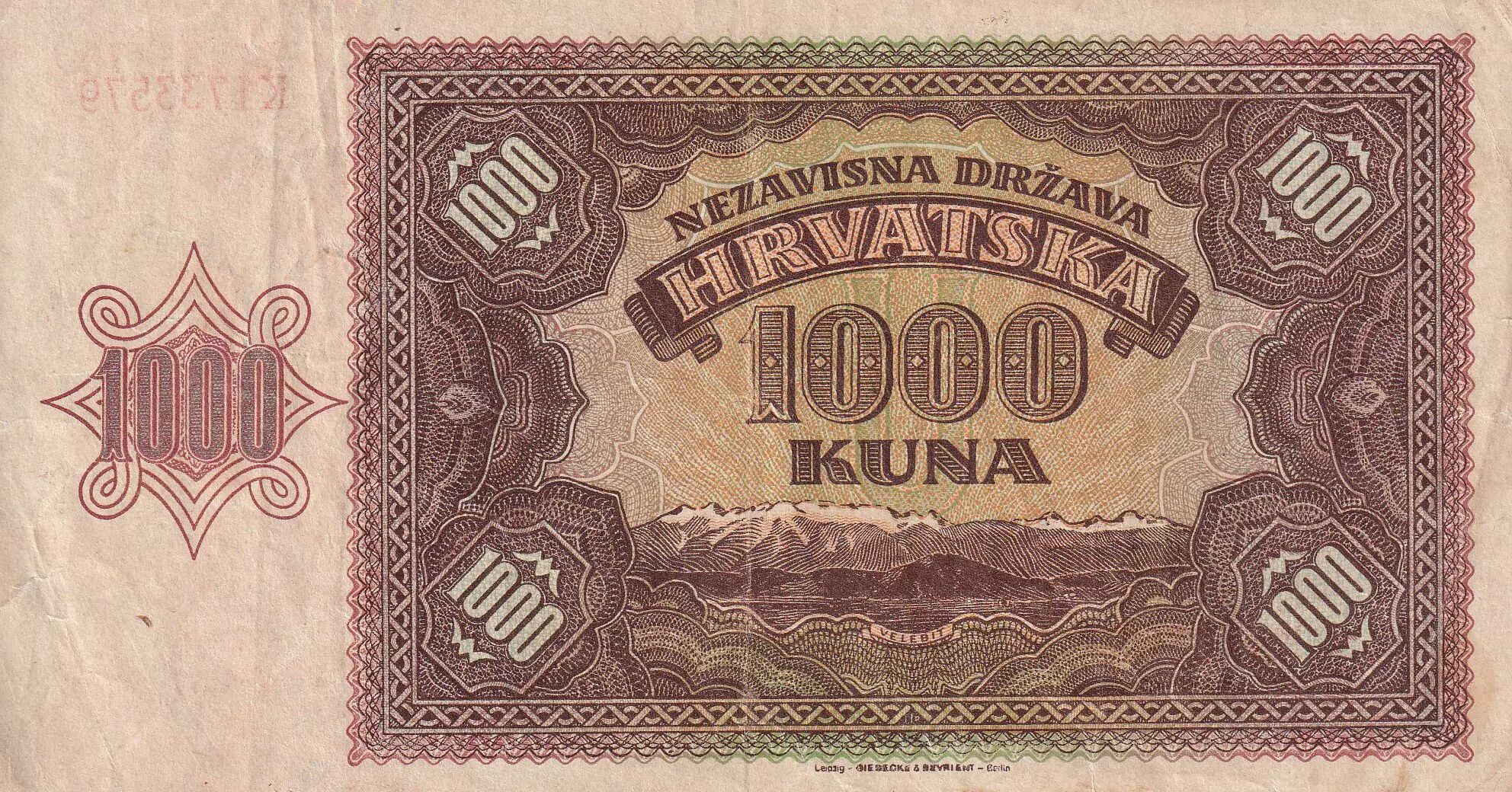 Billet Croatie 1000 Kuna - jeune fille - montagnes - 1941 - Série K - TTB - P.4