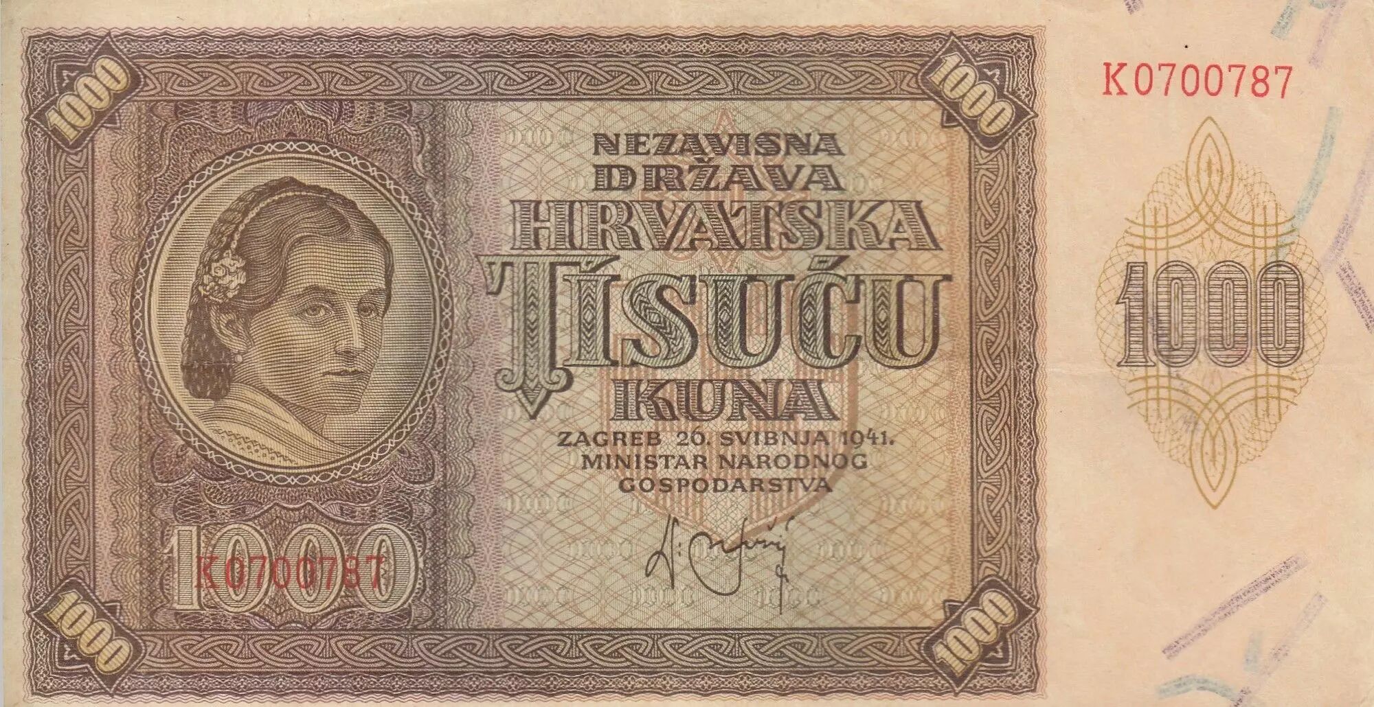 Accueil > Billets du Monde > Billets d'Europe > Croatie > Croatie 1000 Kuna - Jeune fille - Montagnes - 26-05-1941 - Série K