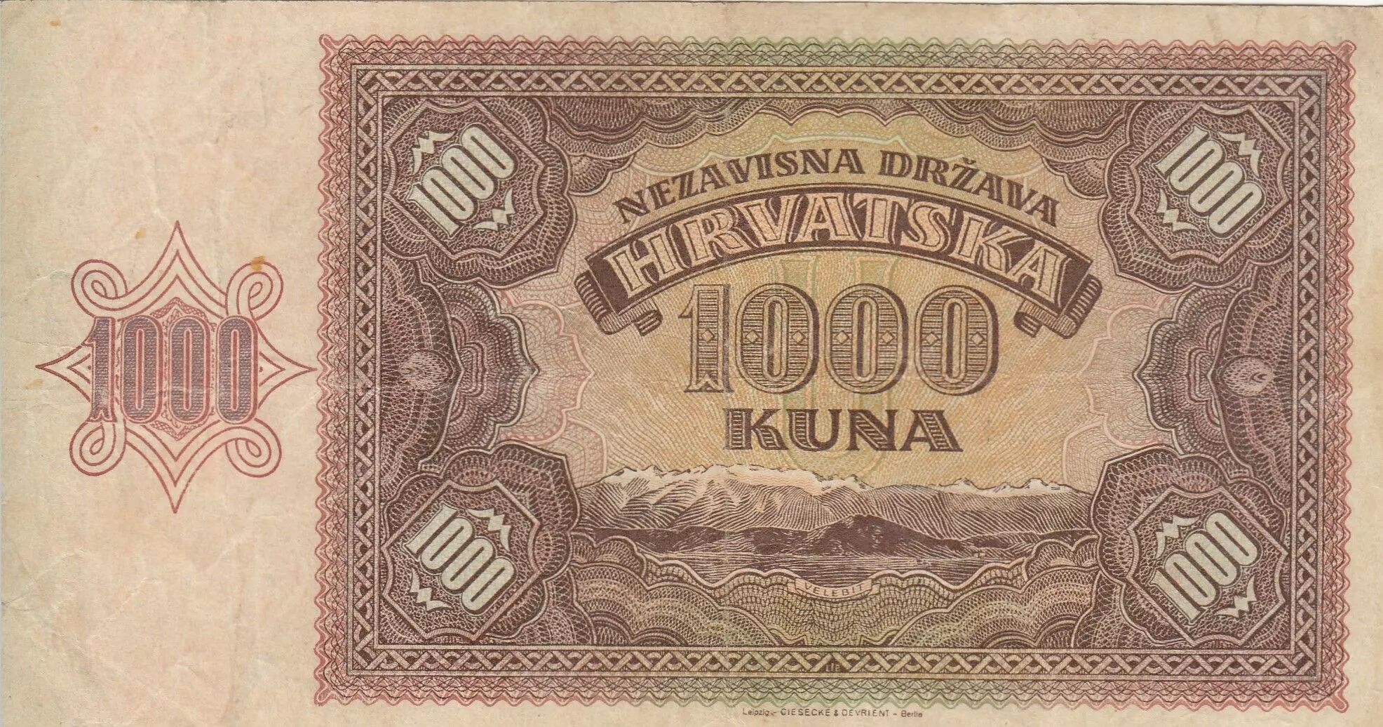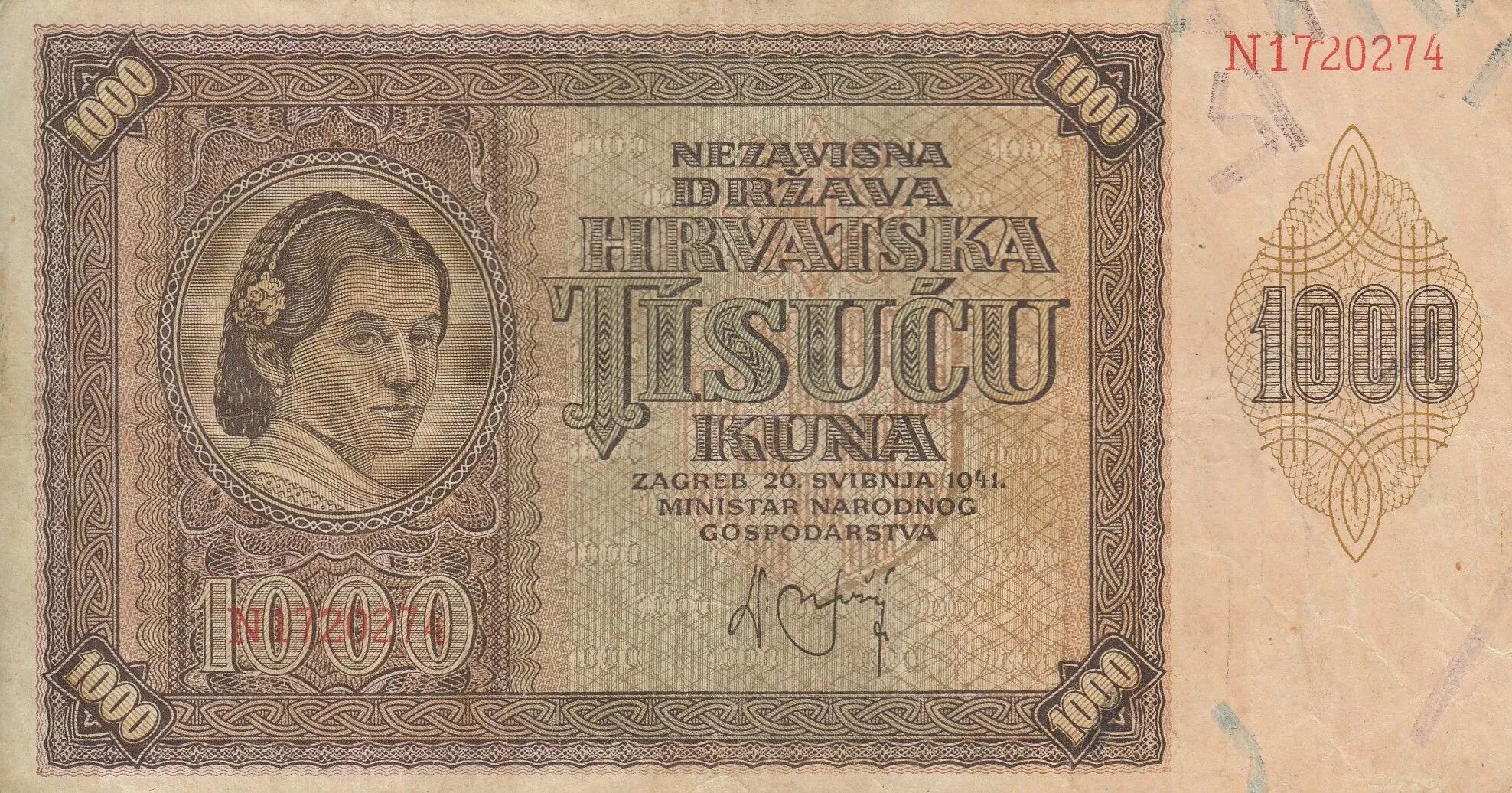 Accueil > Billets du Monde > Billets d'Europe > Croatie > Croatie 1000 Kuna - Jeune fille - Montagnes - 26-05-1941 - Série N