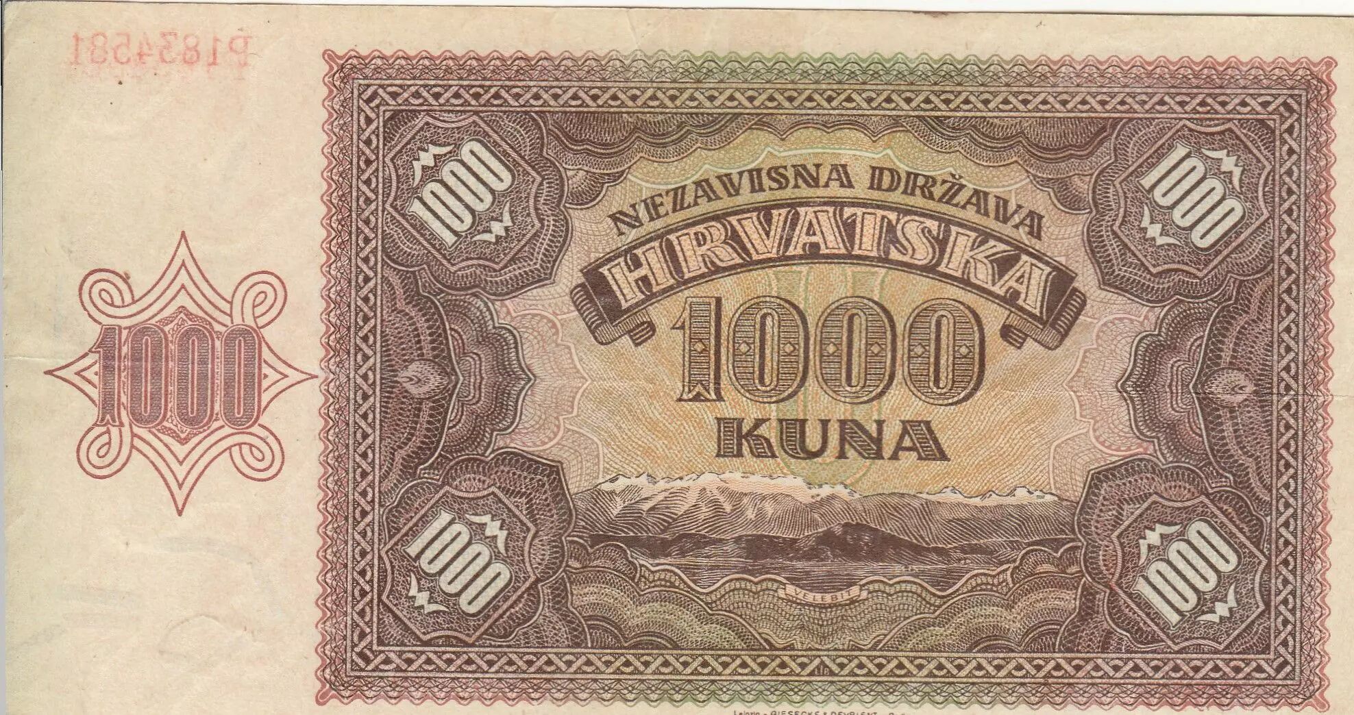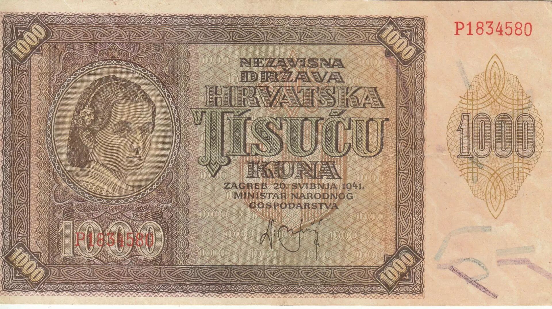 Accueil > Billets du Monde > Billets d'Europe > Croatie > Croatie 1000 Kuna - Jeune fille - Montagnes - 26-05-1941 - Série P