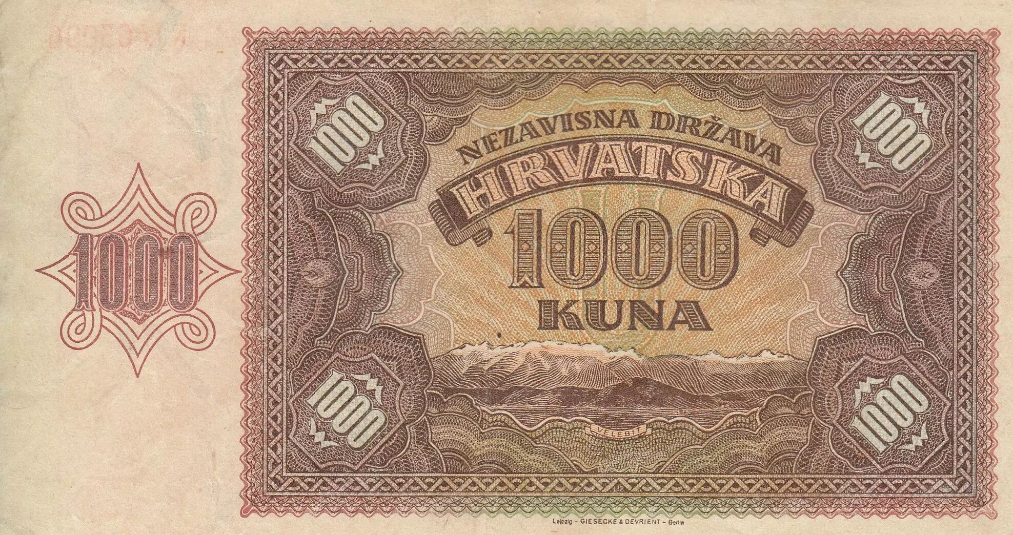 Accueil > Billets du Monde > Billets d'Europe > Croatie > Croatie 1000 Kuna - Jeune fille - Montagnes - 26-05-1941 - Série R