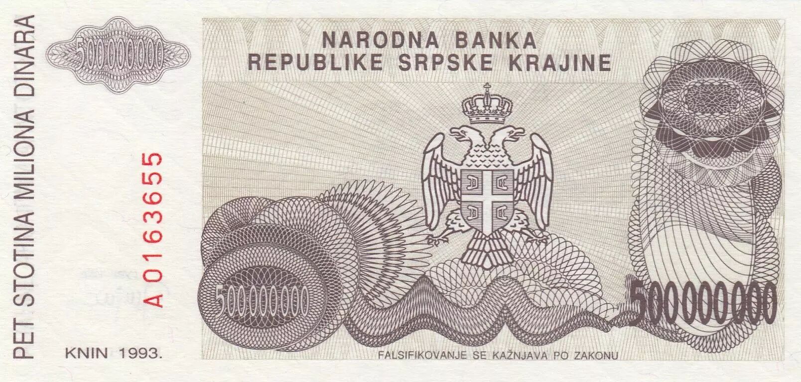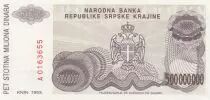 Billet Croatie 500 000 000 Dinara - Armoiries - Château - 1993 - Série A