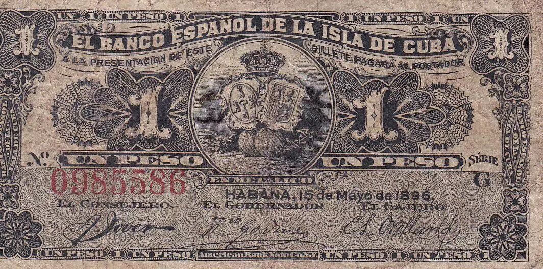 Home > > Cuba 1 Peso - Arms - Queen Maria Cristina - 1896 - P.74a