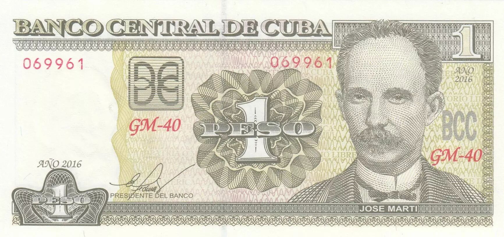 Ce billet de banque de Cuba a une valeur nominale de 1 peso et a été émis en 2016. Il fait partie de la série GM-40 et est référencé sous la désignation P.128.