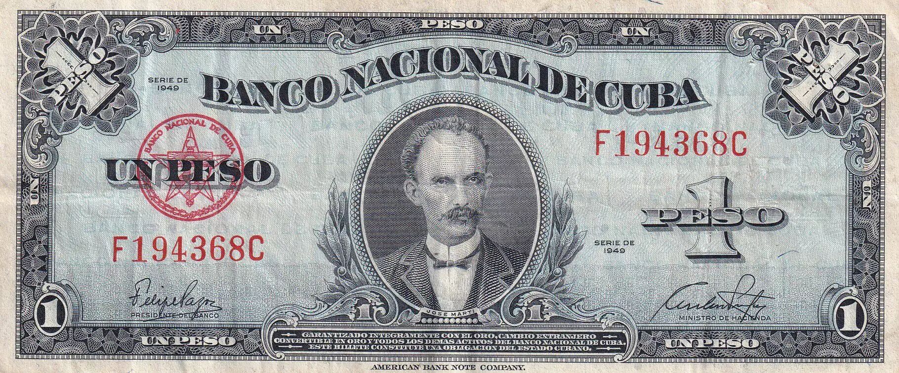 Accueil > Archivage > Cuba 1 Peso -José Marti - Armoiries - 1949 - TTB - P.77a
