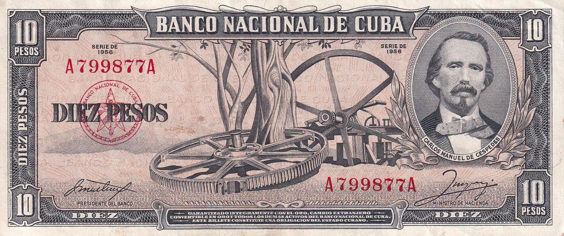 Home > > Cuba 10 Pesos - Carlos M. De Cespedes - Cows - 1956 - VF+ - P.88b