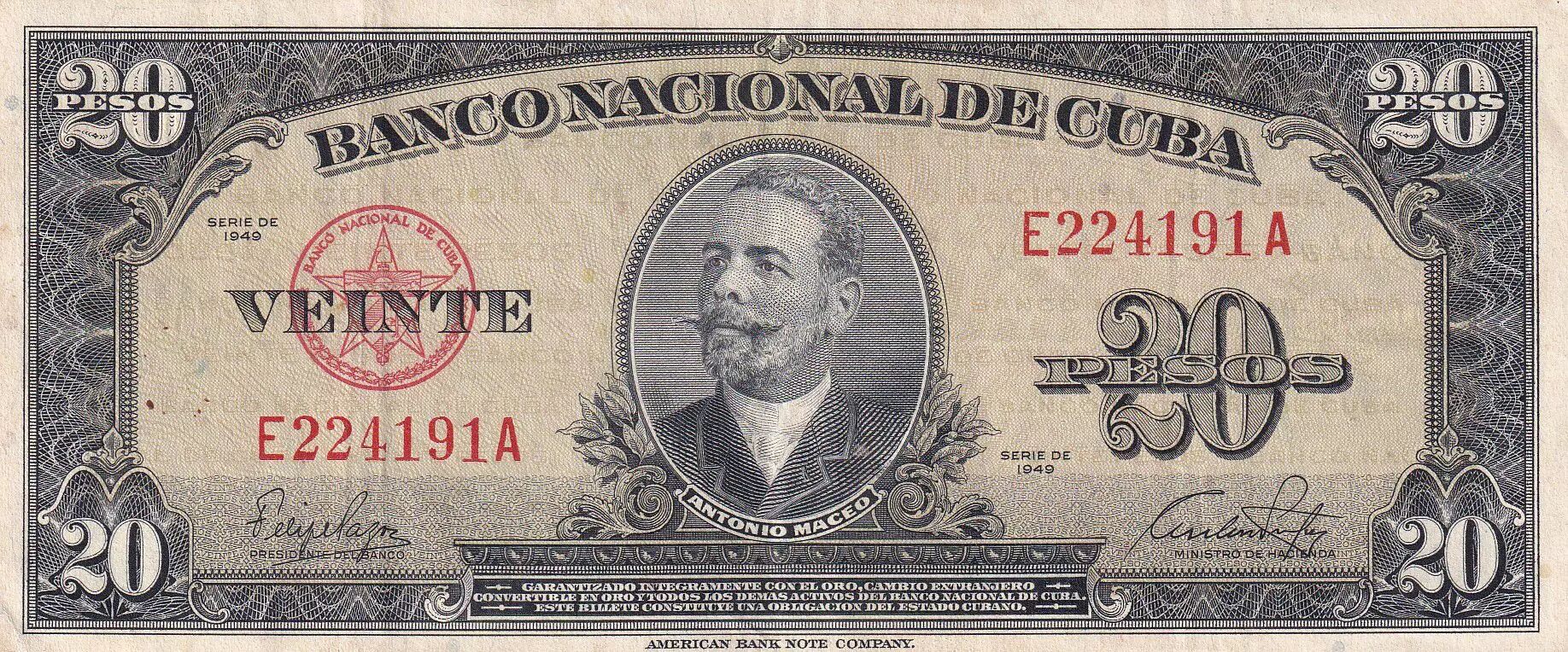 Accueil > Archivage > Cuba 20 Pesos - Antonio Maceo - 1949 - P.80a