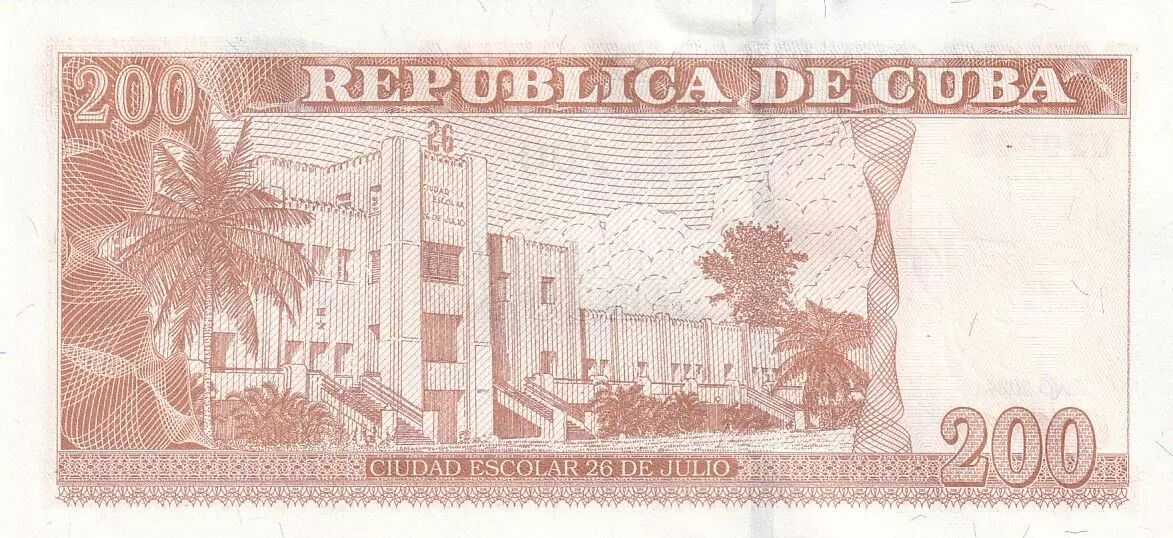 Ce billet de banque est émis par Cuba et présente une valeur nominale de 200 pesos. Il date de l'année 2024.