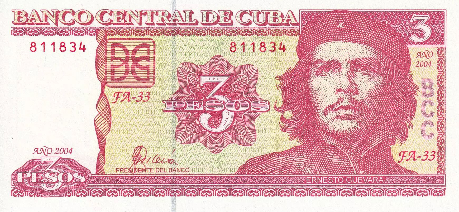 Home > > Cuba 3 Pesos - Che Guevara - 2004 - UNC - P.127