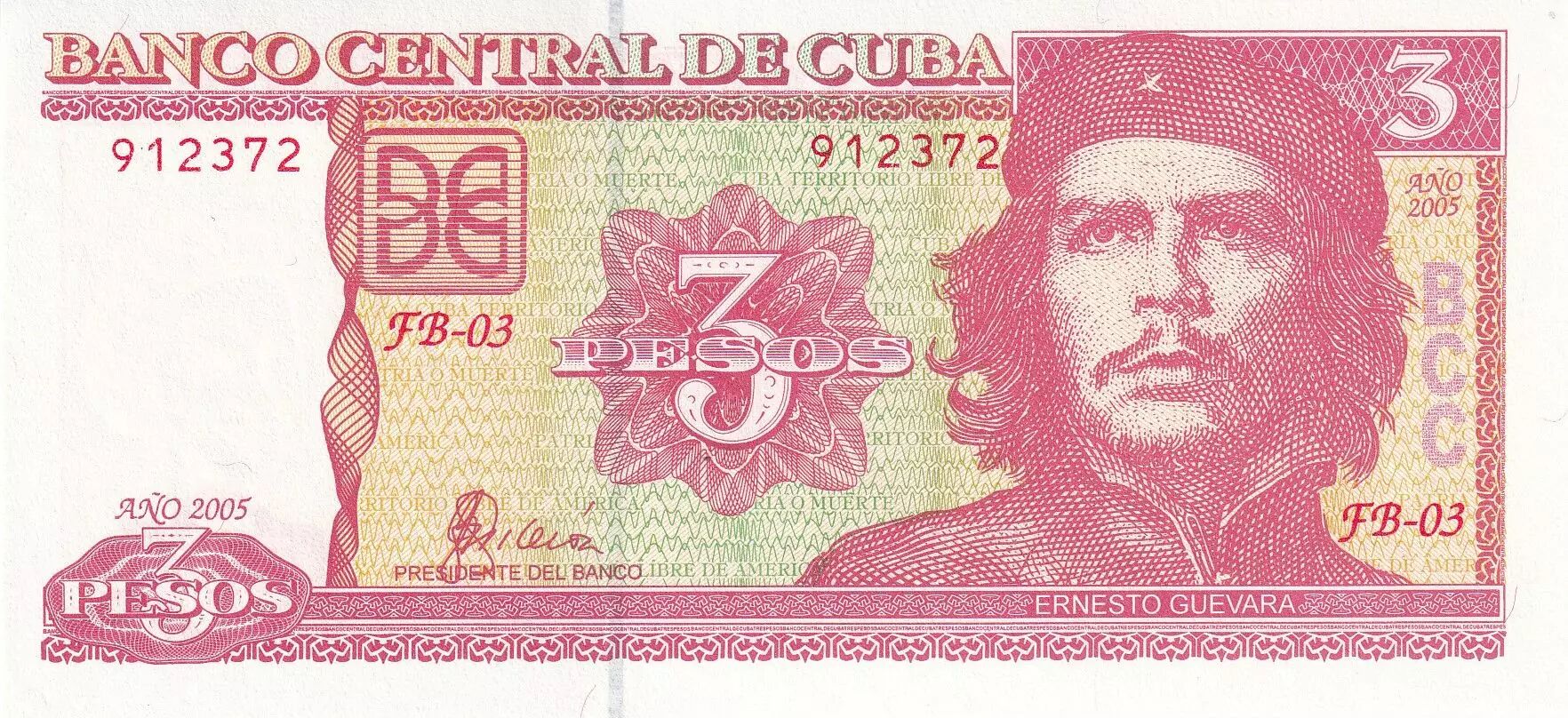 Billet Cuba 3 Pesos - Che Guevara - 2005 - Série FB-03 - P.127b