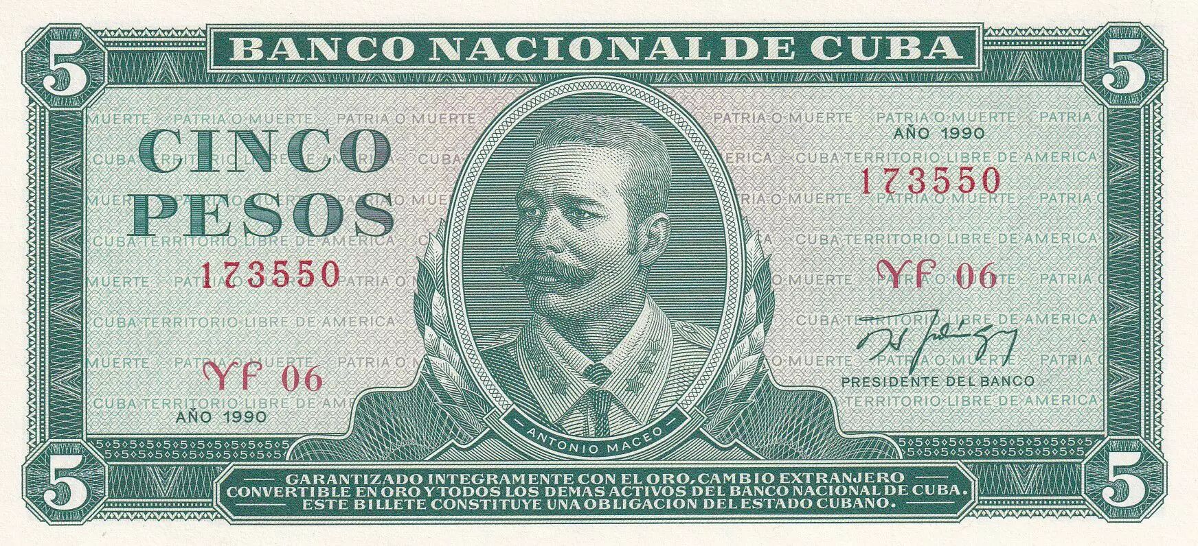 Accueil > Archivage > Cuba 5 Pesos - Antonio Maceo - 1990 - NEUF - P.103d