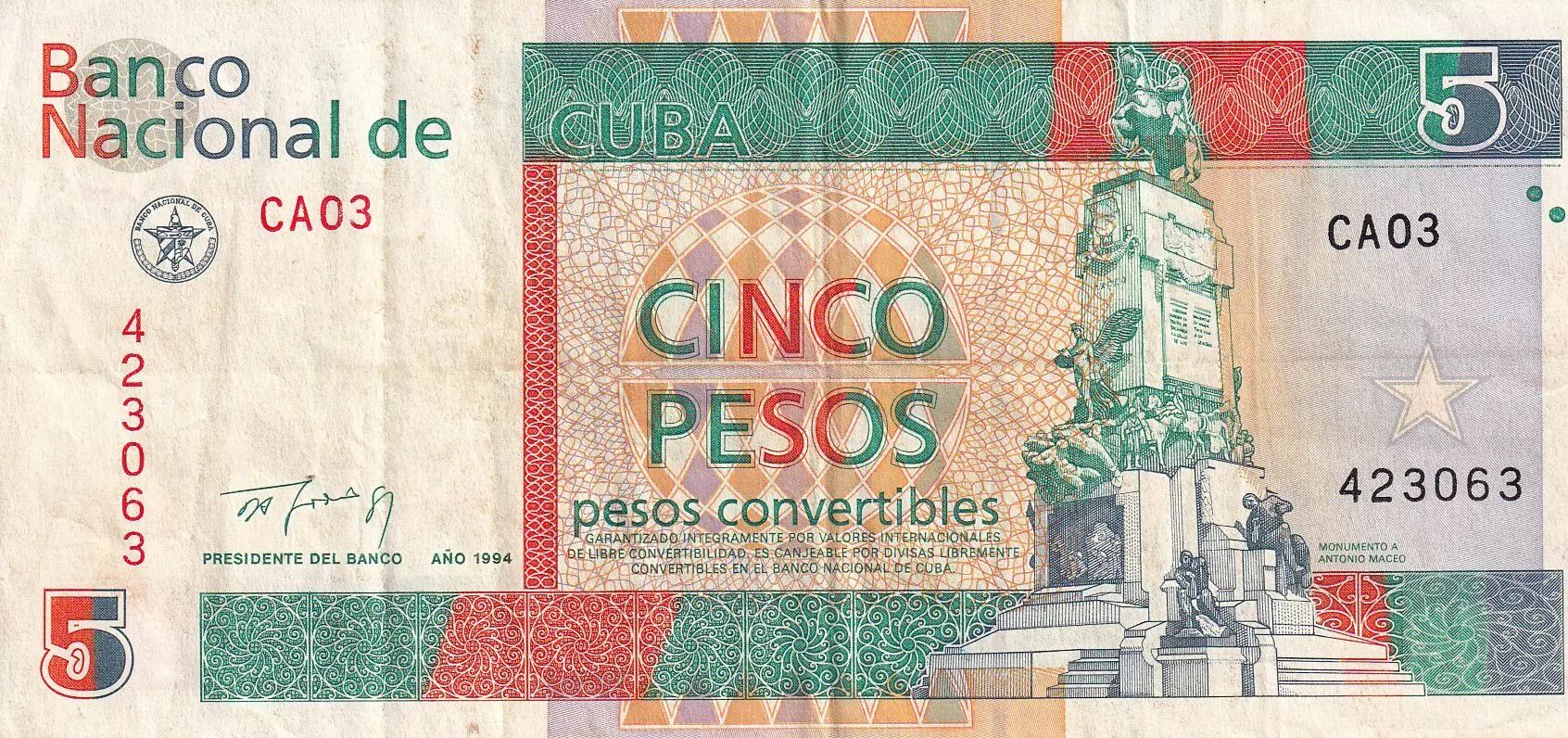 Accueil > Archivage > Cuba 5 Pesos Convertible - Monument - Armoiries - 1994 - TTB+ - P.FX39