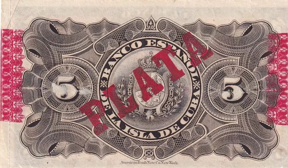 Accueil > Billets du Monde > Billets d'Amérique > Cuba > Cuba 5 Pesos - Femme, bateaux -Surchargé Plata - 1896 - P.48b