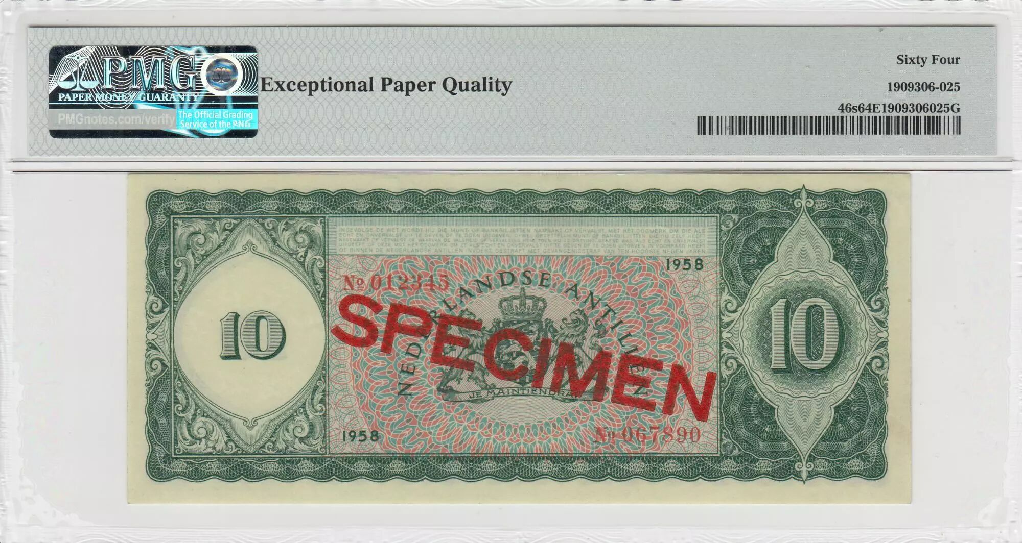 Billet Curaçao 10 Gulden Femme assise, port - 1958 - Spécimen - PMG 64 EPQ