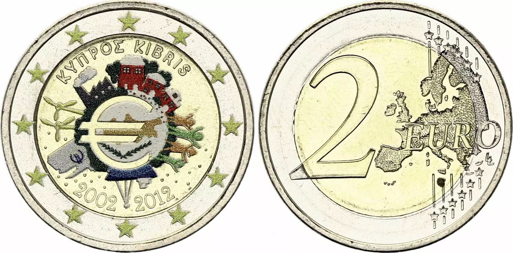 Coin Cyprus 2 Euros - 10 years of the Euro - Colorised - 2012