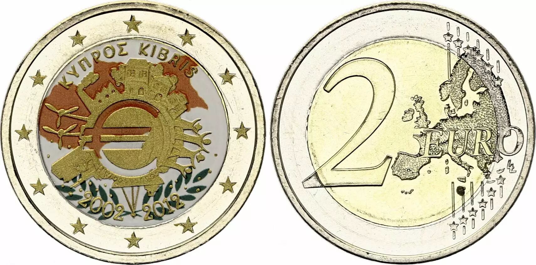 Coin Cyprus 2 Euros - 10 years of the Euro - Colorised - 2012