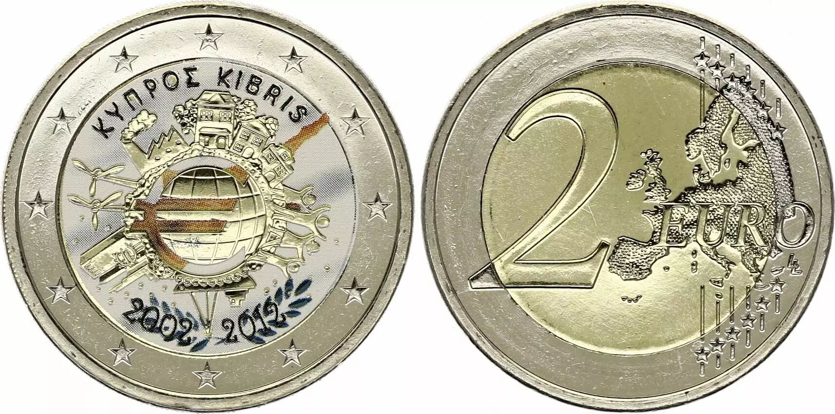 Coin Cyprus 2 Euros - 10 years of the Euro - Colorised - 2012