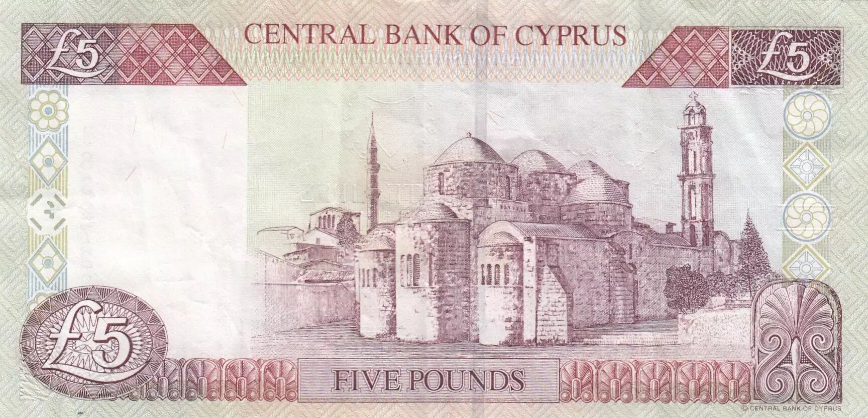 Home > World Banknotes > European Banknotes > Cyprus > Cyprus 5 pounds - Head of young man - Church and Mosque - 2001 - J832723