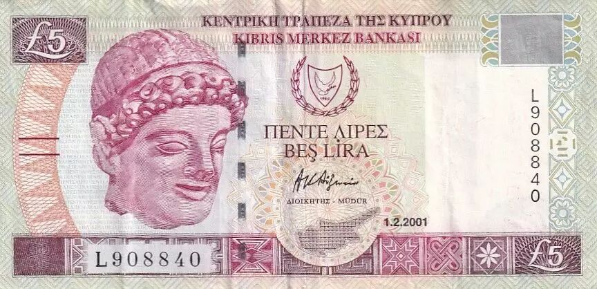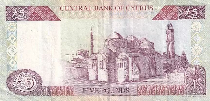 Banknote Cyprus 5 Pounds Head of young man - Church and Mosque - 2001 - L908840