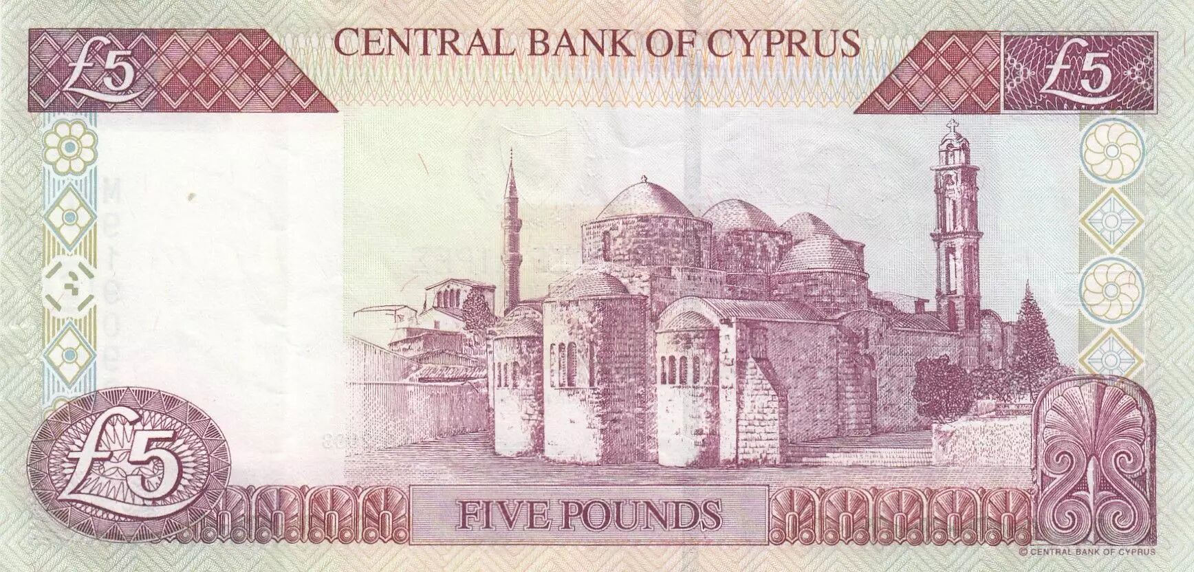 Banknote Cyprus 5 pounds - Head of young man - Church and Mosque - 2003 - M919098