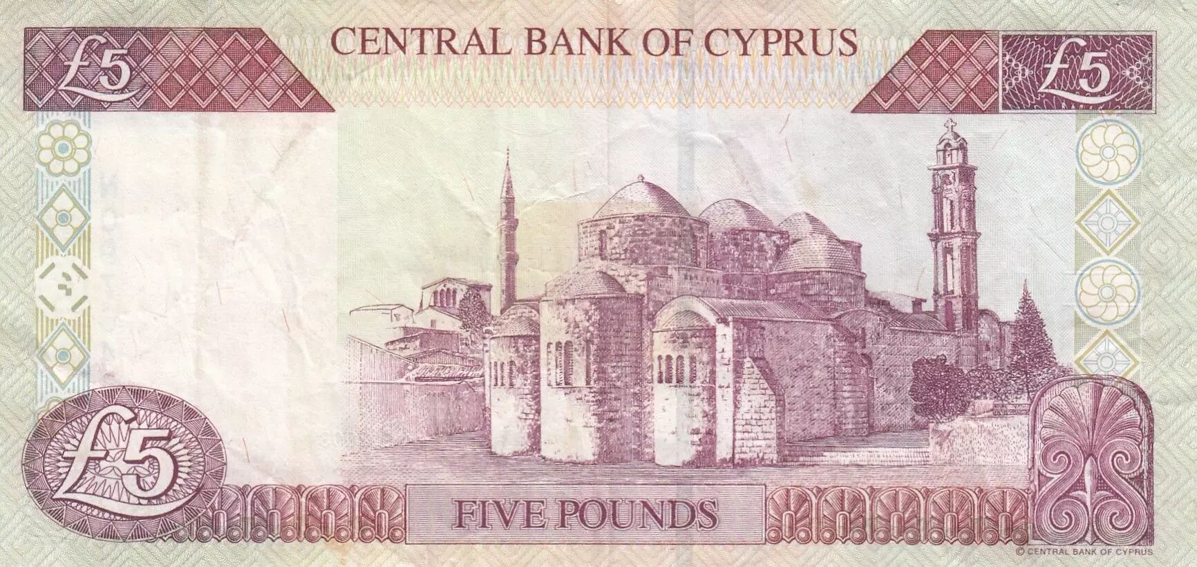 Banknote Cyprus 5 pounds - Head of young man - Church and Mosque - 2003 - N097647
