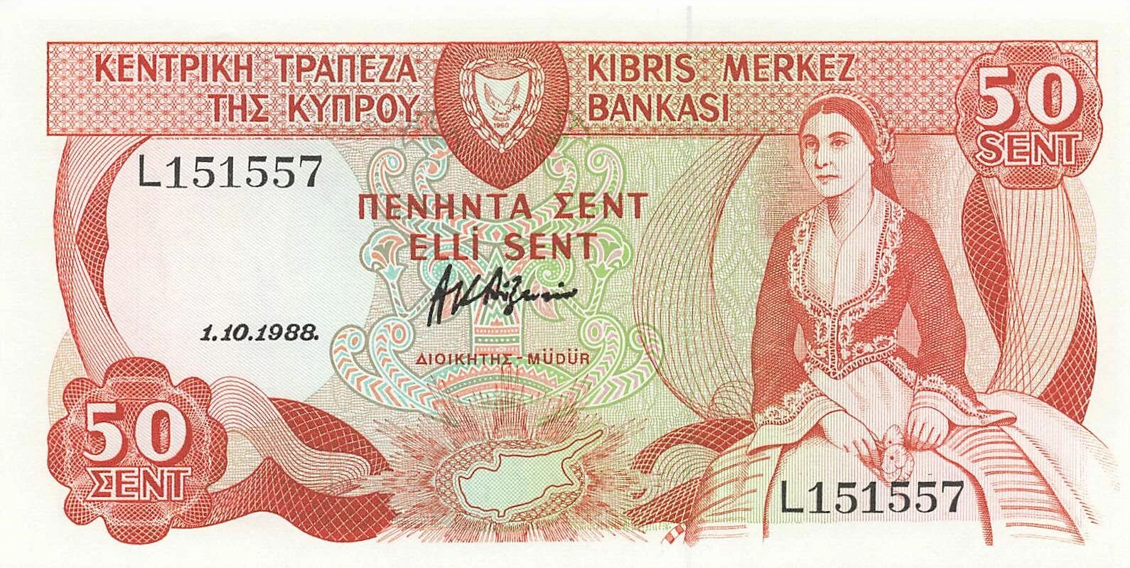 Home > World Banknotes > European Banknotes > Cyprus > Cyprus 50 Sent - 01-10-1988 - P.52