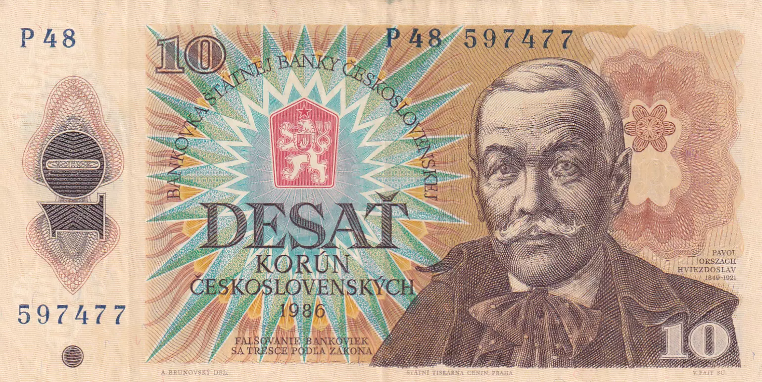 Banknote Czechoslovakia 10 Korun 1986 - Pavol Orszag Hviezdoslav, Mountains - Serial V23