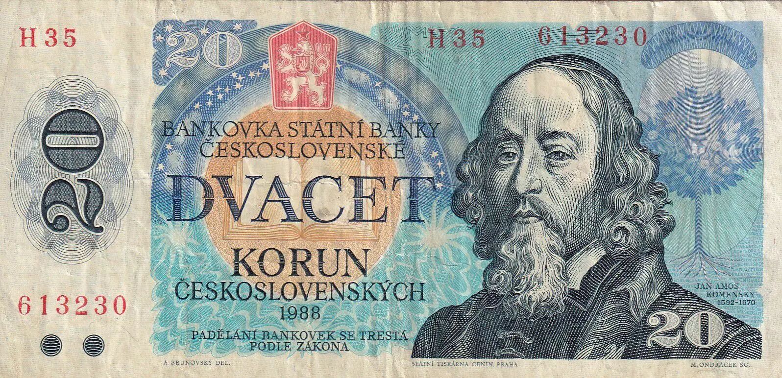 Home > > Czechoslovakia 20 Korun - Jan A. Komensky - 1988 - Serial H - P.95b