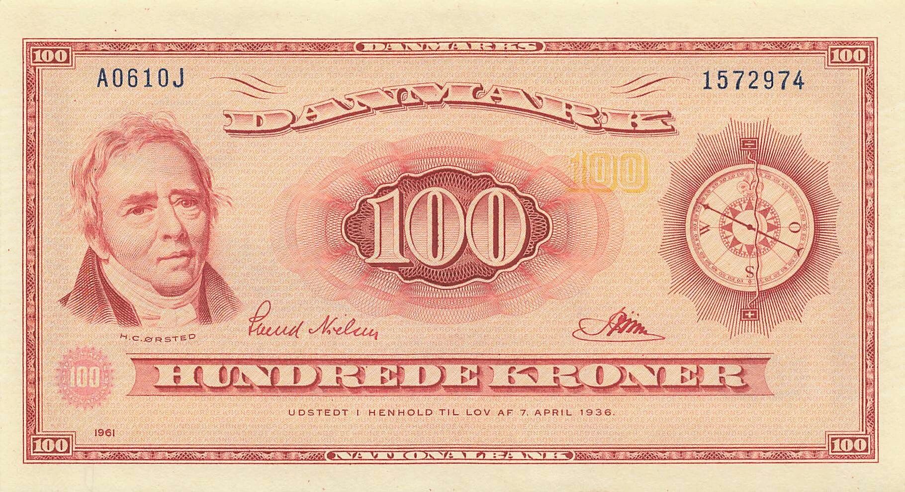 Accueil > Billets du Monde > Billets d'Europe > Danemark > Danemark 100 Kroner - H.C. Orsted - 1961 - P.46
