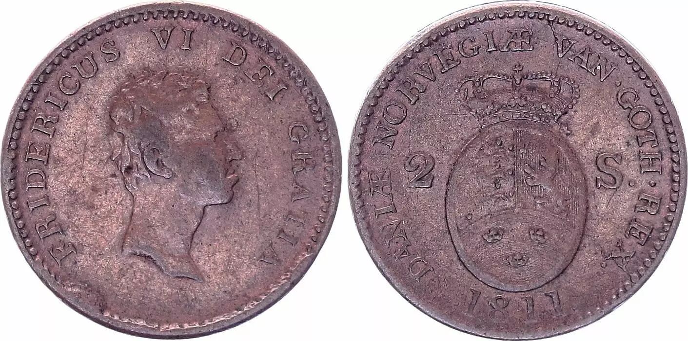 Pièce Danemark 2 Skilling, Fréderic VI - 1811